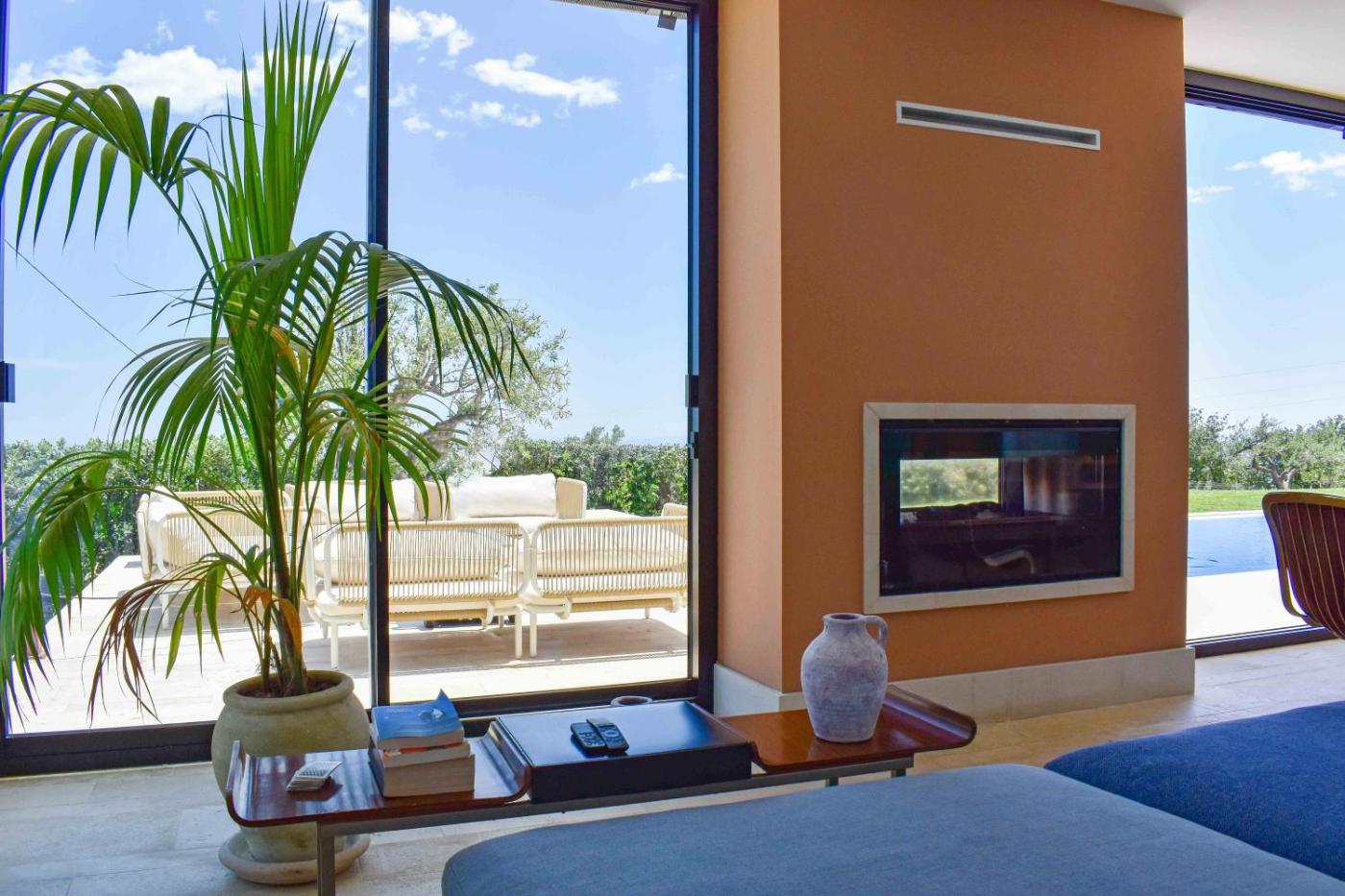 Villa. This villa boasts a pool with a view and a fireplace. Featuring a private entrance, this air-conditioned villa is comprised of 1 living room, 4 separate bedrooms and 4 bathrooms with a shower and a bidet. Guests can make meals in the kitchen that is fitted with a stovetop, a refrigerator, a dishwasher and kitchenware. The unit features a washing machine, sea views, a terrace and winechampagne is featured for guests. The unit offers 4 beds.