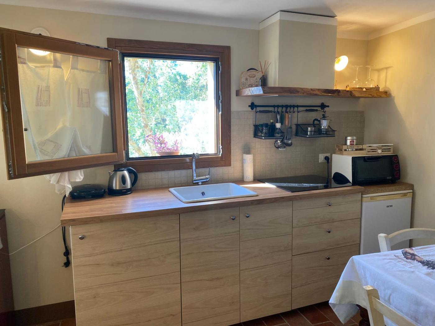 Appartamentino su 2 Livelli. This apartments standout feature is the pool with a view. Boasting a private entrance, this air-conditioned apartment includes 1 living room, 1 separate bedroom and 1 bathroom with a bath or a shower and a bidet. Meals can be prepared in the well-fitted kitchen, which is fitted with a stovetop, a refrigerator, kitchenware and a microwave. Featuring a terrace with garden views, this apartment also offers a tea and coffee maker and a TV. The unit has 2 beds.