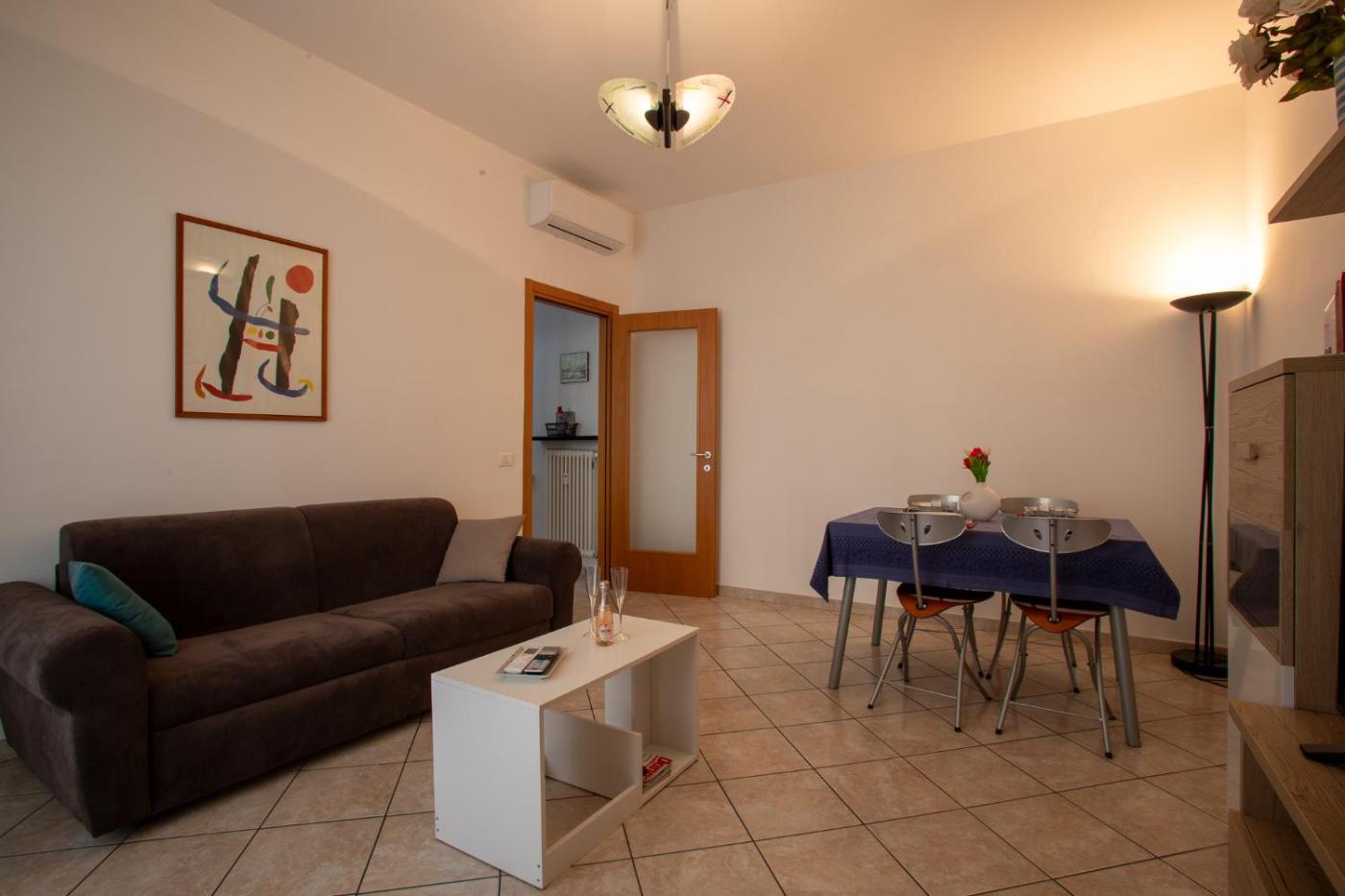 Appartamento con 1 Camera da Letto. Featuring a private entrance, this air-conditioned apartment comprises 1 living room, 1 separate bedroom and 1 bathroom with a walk-in shower and a bidet. Meals can be prepared in the well-fitted kitchen, which is equipped with a stovetop, a refrigerator, kitchenware and an oven. The spacious apartment provides a washing machine, a tea and coffee maker, a seating area, a dining area, as well as a TV with cable channels. The unit offers 2 beds.