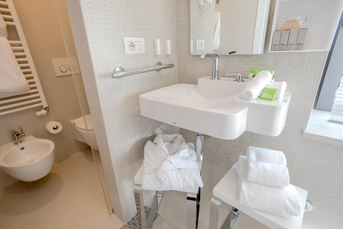 Ogni alloggio presenta un bagno privato con bidet, l’aria condizionata, una TV a schermo piatto e un minibar. Alcune unità includono un balcone eo un patio.