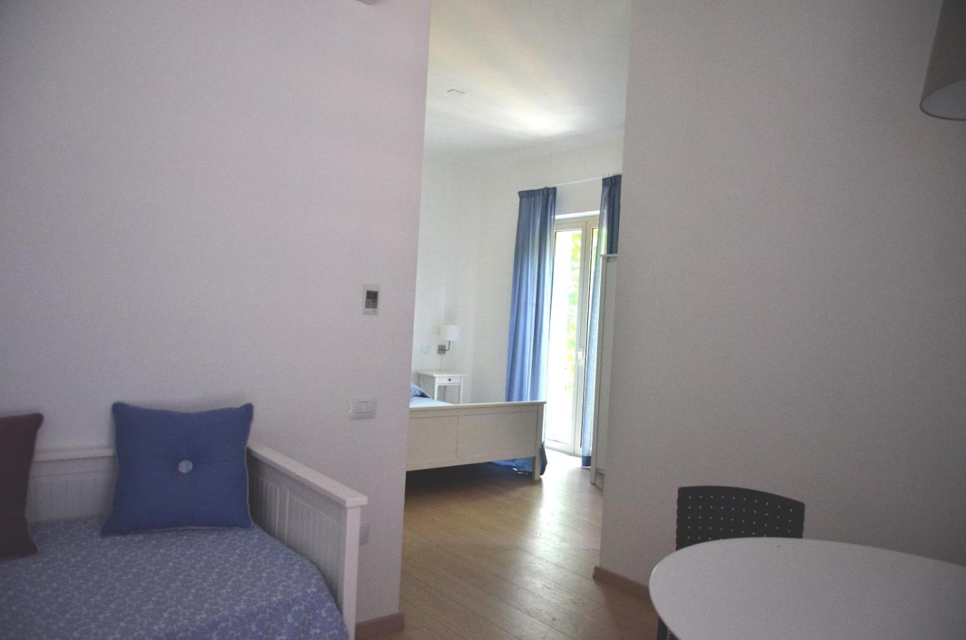 Camera Quadrupla. Camera quadrupla climatizzata dotata di minibar, balcone con vista giardino e bagno privato con doccia. Lalloggio presenta 2 letti. ;