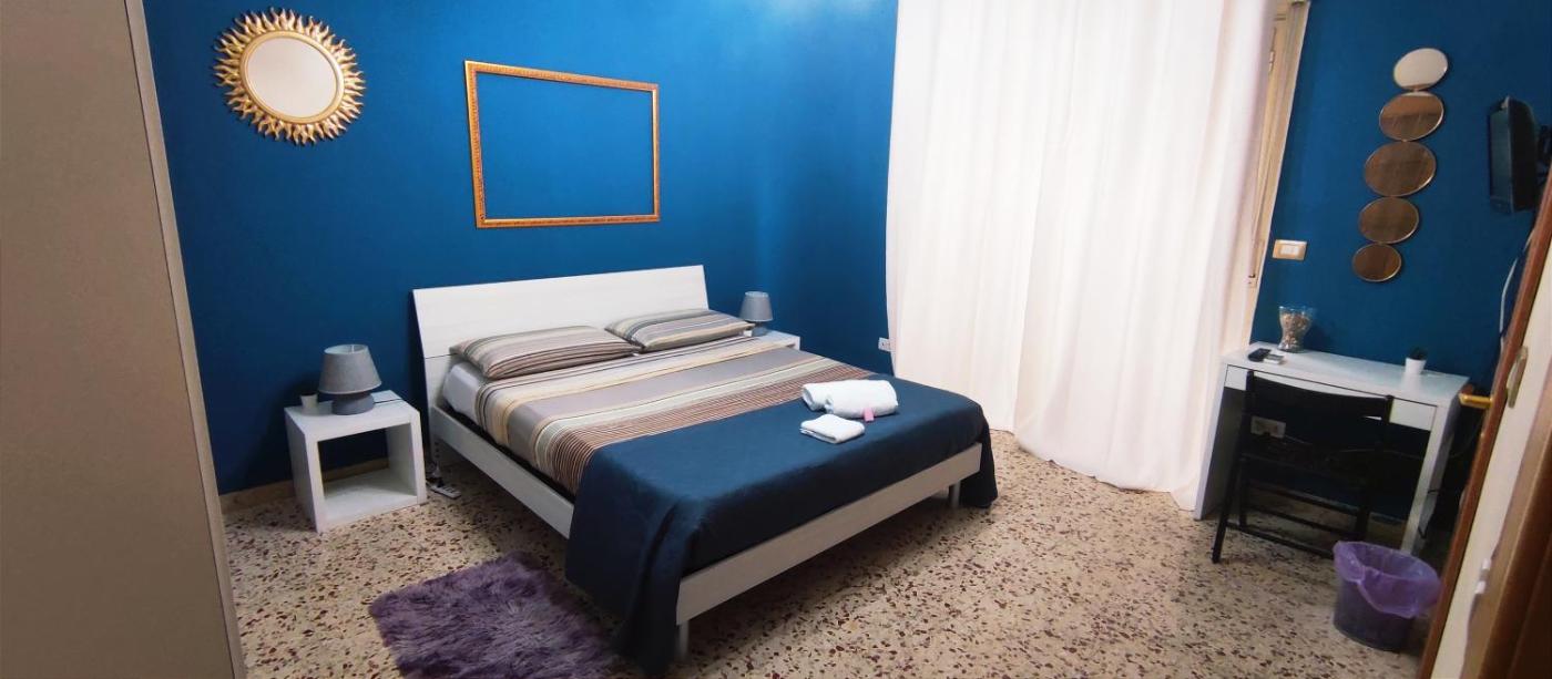 Camera Matrimoniale con Bagno Privato. Camera matrimoniale climatizzata dotata di balcone, scrivania, vista sul mare e bagno privato. Presenta 1 letto. ;