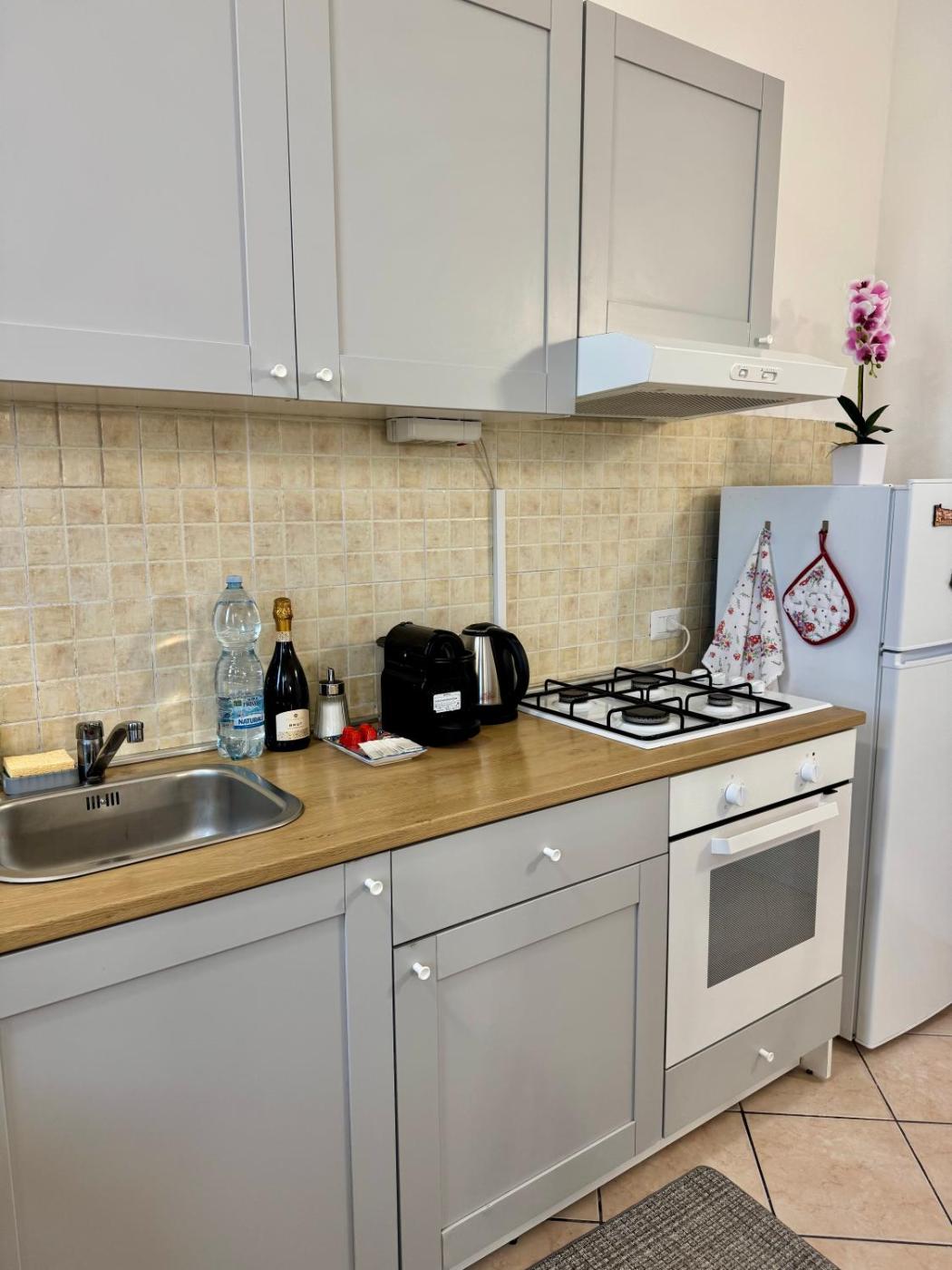 Appartamento - Piano Terra. The air-conditioned apartment features 1 bedroom and 1 bathroom with a shower and a bidet. Meals can be prepared in the well-fitted kitchen, which is equipped with a stovetop, a refrigerator, kitchenware and an oven. The apartment provides a flat-screen TV with cable channels, soundproof walls, a tea and coffee maker, a seating area as well as ancourtyard view. The unit offers 3 beds.