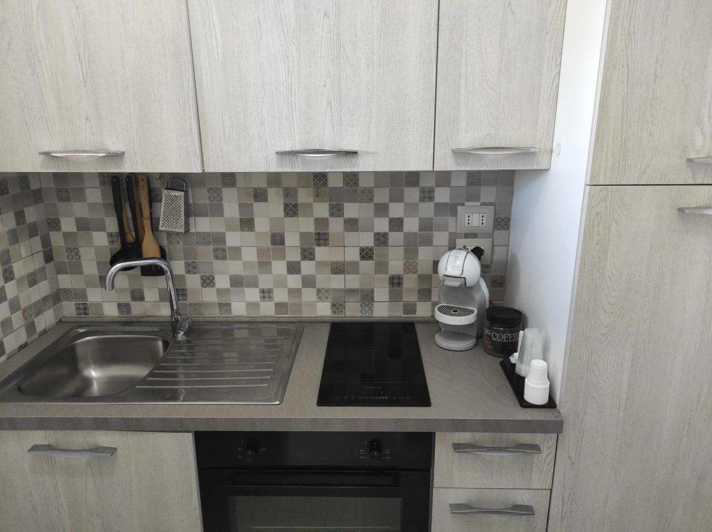 Monolocale Standard. The well-equipped kitchen has a stovetop, a refrigerator, kitchenware and an oven. The studio features air conditioning, a washing machine, a balcony with a quiet street view as well as a private bathroom boasting a shower. The unit has 2 beds.