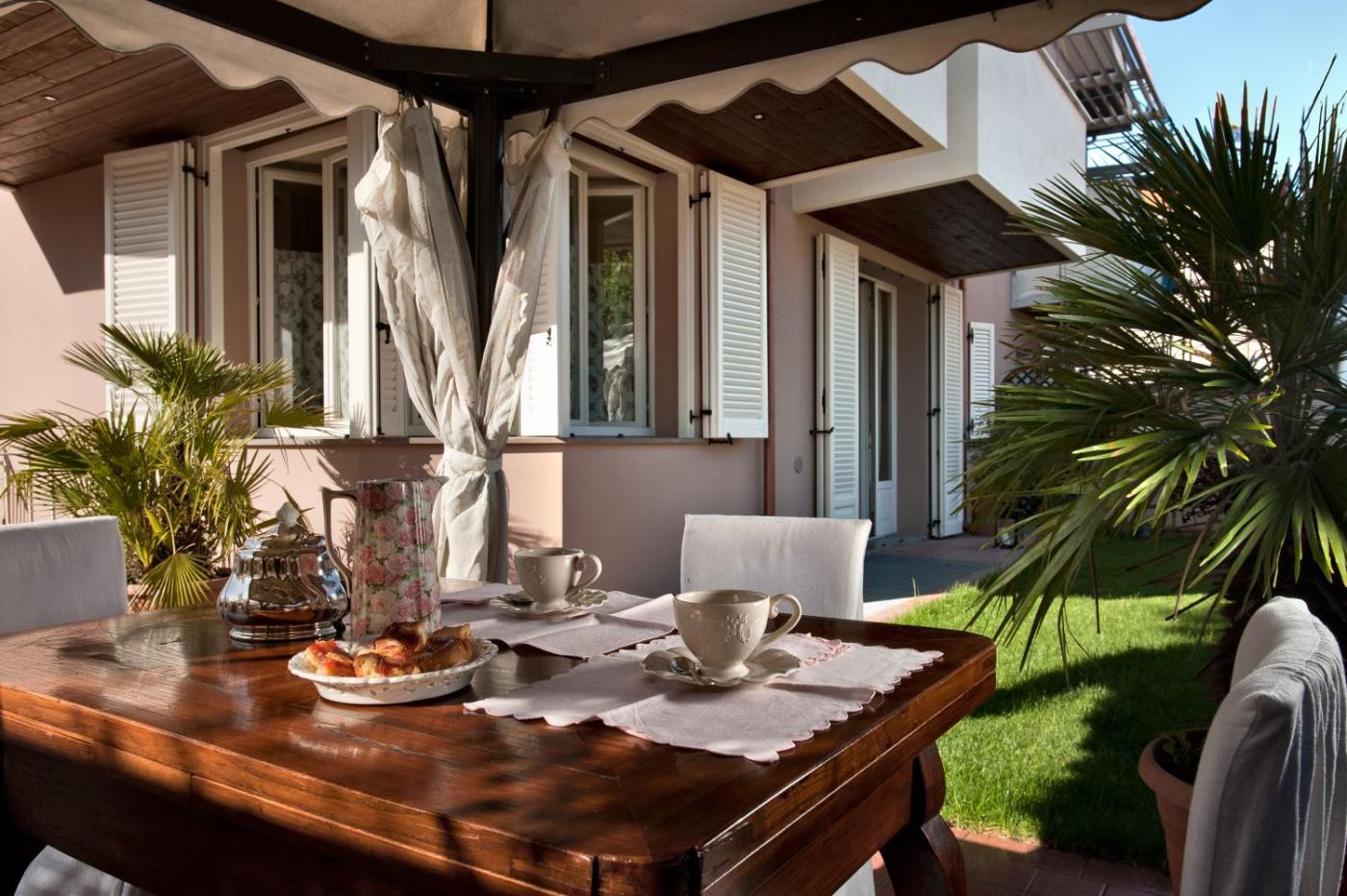 Camera Matrimoniale. Spaziosa camera matrimoniale con aria condizionata,per la preparazione di tè e caffè, terrazza con vista sul giardino e bagno privato con doccia. Lalloggio presenta 1 letto.