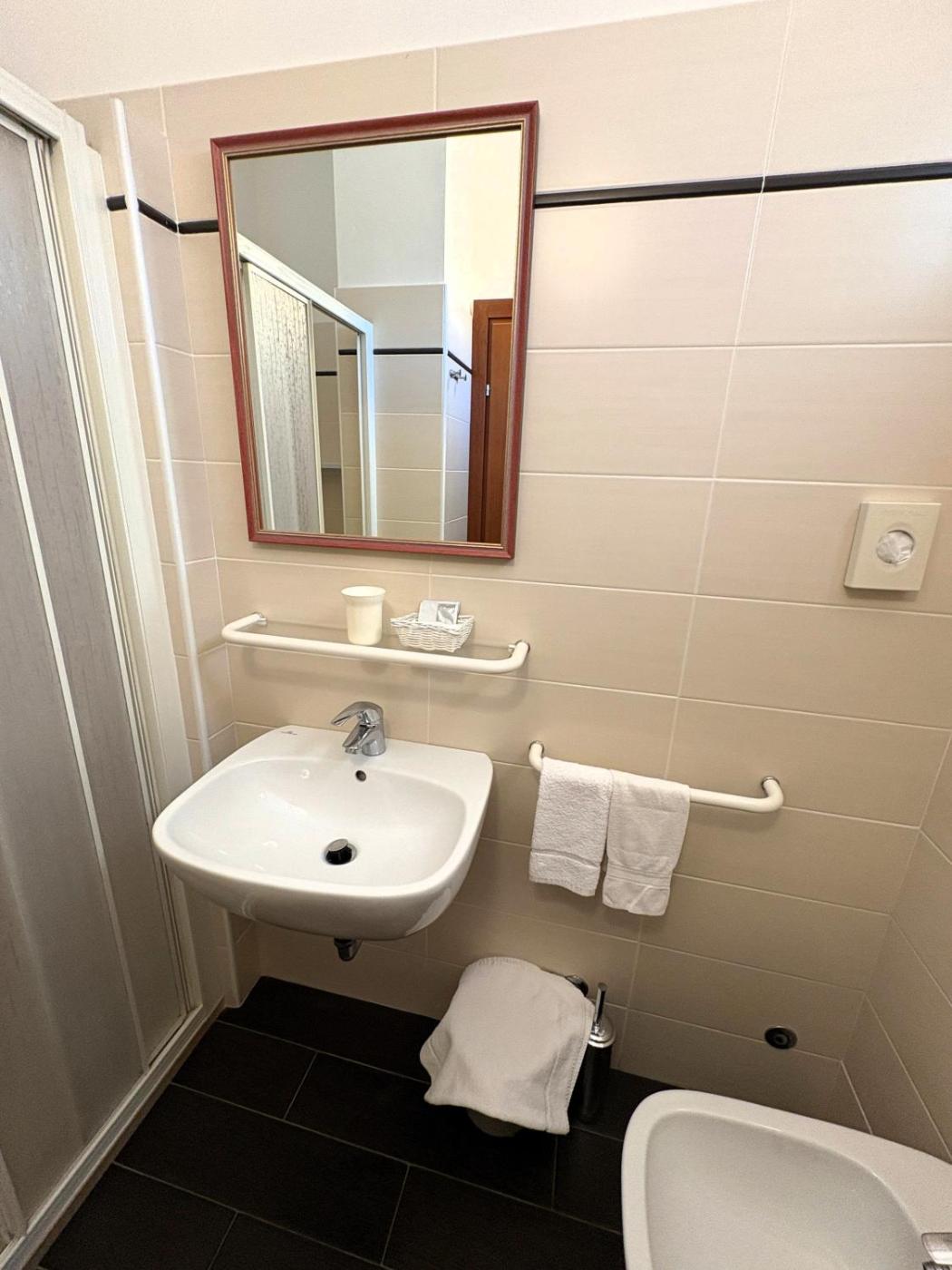 Camera Tripla con Balcone. Providing free toiletries and bathrobes, this triple room includes a private bathroom with a shower, a bidet and a hairdryer. This air-conditioned triple room comprises a dining area, a flat-screen TV with satellite channels a wardrobe and a terrace. ;