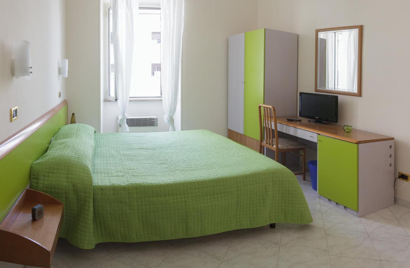 Camera Tripla. The triple room features a private bathroom equipped with a shower and a bidet. The air-conditioned triple room provides a flat-screen TV with cable channels, a private entrance, a wardrobe, a tiled floor as well as city views. The unit offers 2 beds.