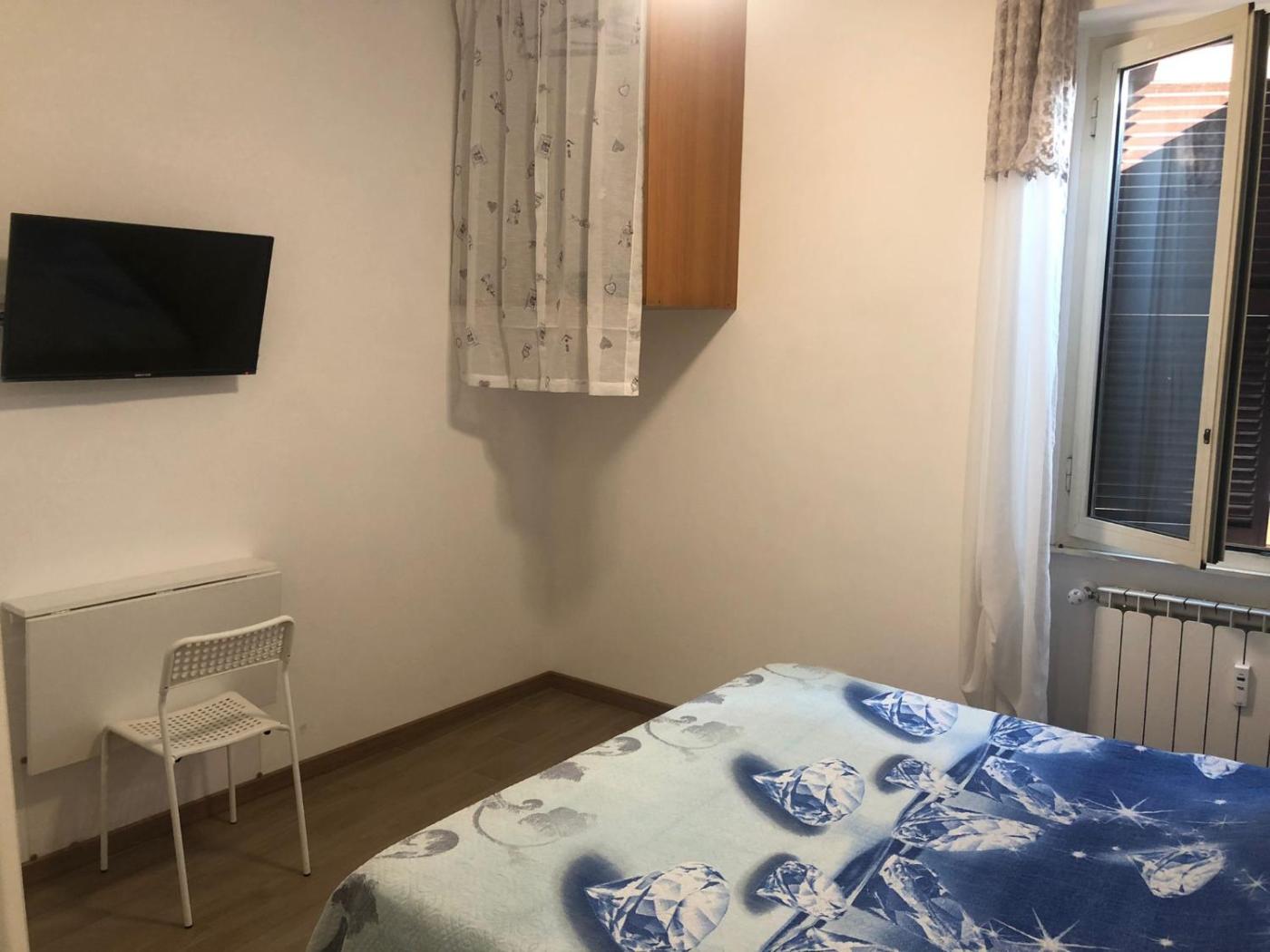 Camera Matrimoniale con Bagno in Comune. The double room features a tea and coffee maker, a dining area, as well as a shared bathroom boasting a shower and a bidet. This double room has a wardrobe, heating, a flat-screen TV and a quiet street view. The unit has 1 bed. ;